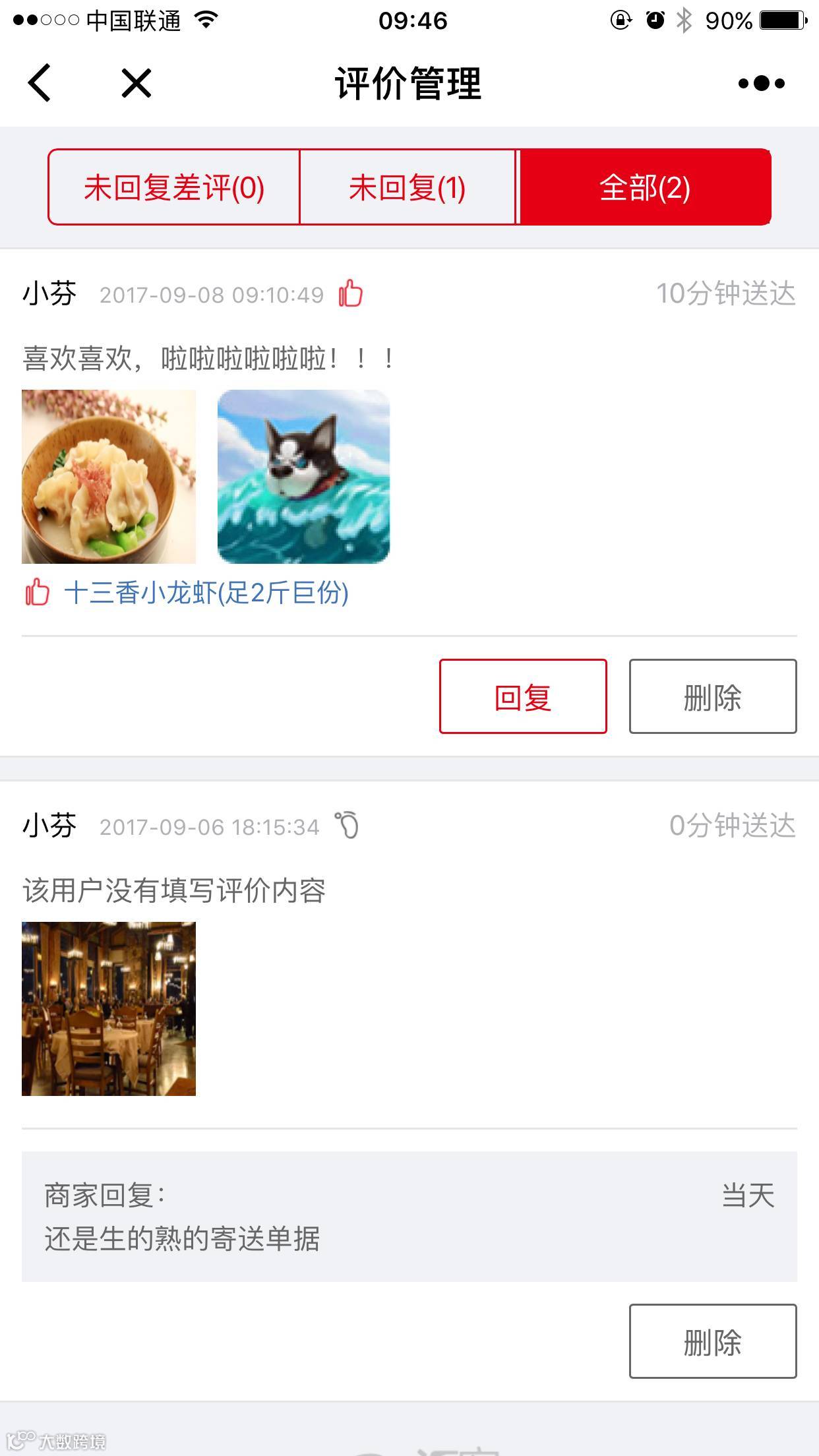 商家回复
