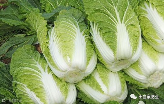每亩生产5000公斤大白菜需从土壤中吸收纯氮11公斤、磷54.7公斤 、钾12.5公斤,三者比例为1:0.4:1.1。大白菜苗期吸收养分较少,氮、磷、钾的吸收量不足总吸收量的10%;莲座期明显增多,约占总量的30%左右;包心期吸收养分最多,约占总量的60%左右。大白菜在营养生长期内,充足的氧素营养促形成肥大的绿叶和提高光合效率具有特别重要的作用。