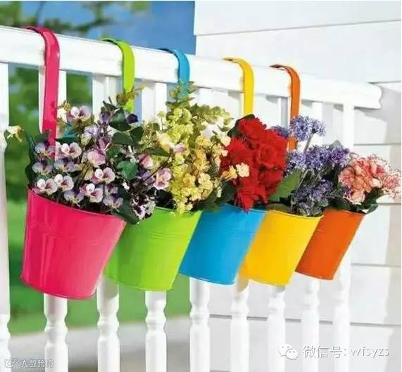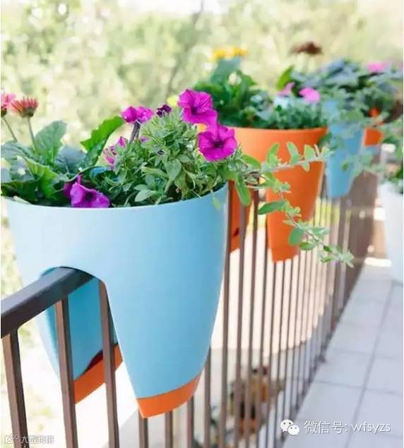上面的花袋当然是可爱的,但如果你还是希望传统的种植比如盆栽那样子,你可以购买如图中这样的花盆,当然除了利用栏杆垂直的墙面也是一大妙招。
