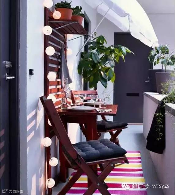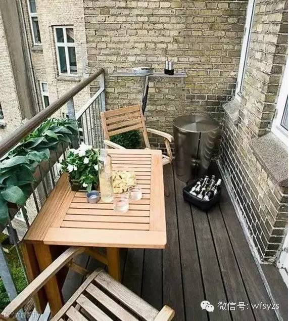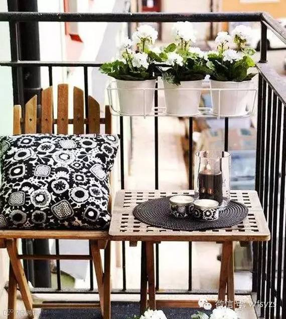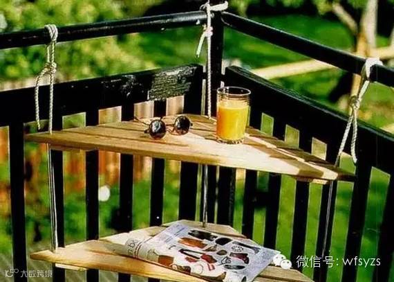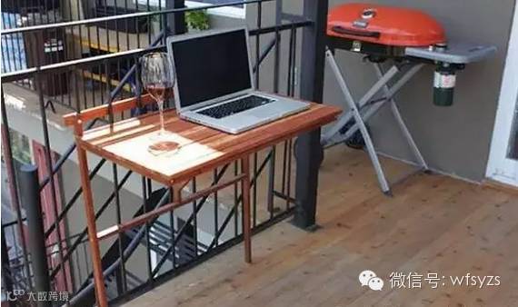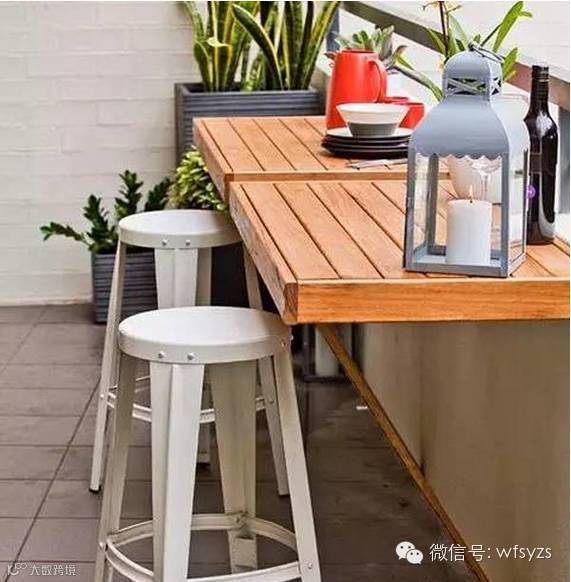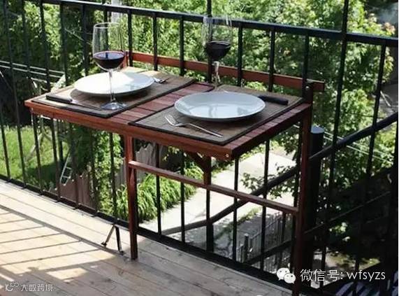 买一张不太大的桌子,别让你的阳台显得格外拥挤,最好是可以固定在栏杆上的折叠桌。