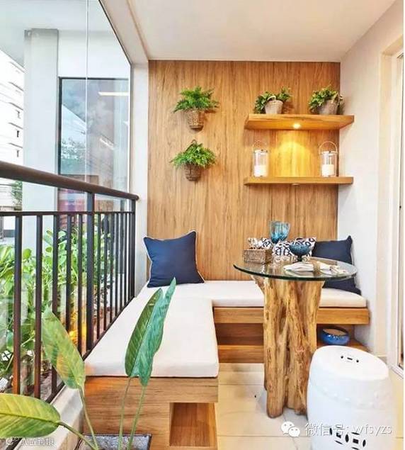 许多人选择将阳台布置成休息区。再添加几盆绿植,生机盎然又增添了美丽 。