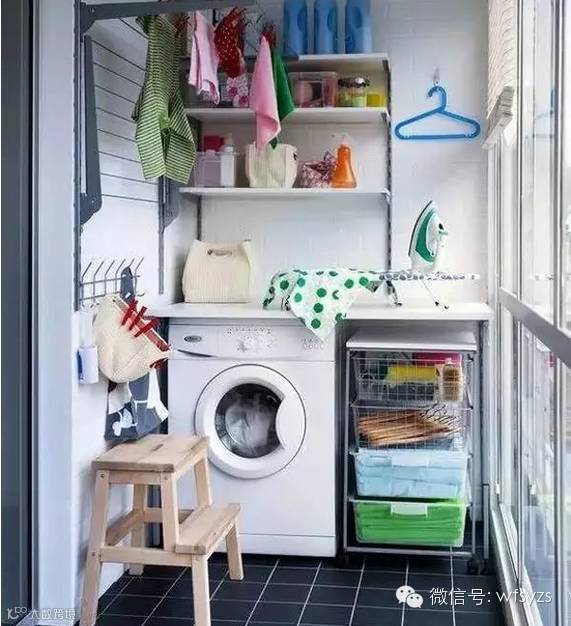 阳台改造成洗衣房对于我们来说是最适合不过了。通过定制置物架,把阳台的部分空间做成洗衣房,洗衣、晾衣、烫衣,都可在阳台上完成。当然除了洗衣服还可以兼具其他功能。