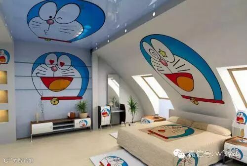再也不用担心设计不好儿童房了,同样是利用了阁楼的空间,以哆啦A梦为主题的卧室让人不觉就心情开朗。如果是个男孩子,一定会为这样的设计所打动。如果说孩子不喜欢哆啦A梦,没有关系,只要将图案换成孩子喜爱的动漫人物,一样会有很棒的效果。