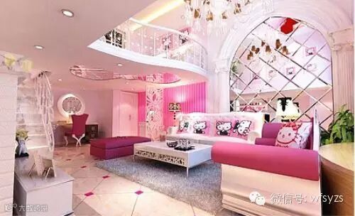 欣赏过神秘的北欧主题,就让我们来看一看KT主题的复式楼装修。肯定会有人说,好好的复式楼,装修的大气沉稳点多好。但是主人就偏偏逆道而行,不过粉色的KT主题,也显示出了主人的个性,并且同样让人觉得震撼。如果家中有一位天真烂漫热爱卡通的女性,这样的装修一定会让她觉得如置身于宫殿中。