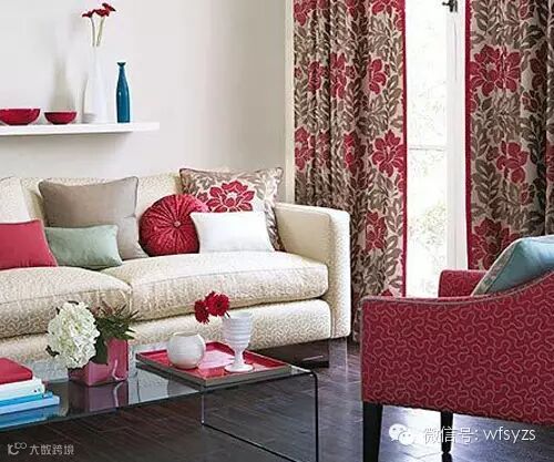 米白色可能会显得安静些,喜欢热闹的客厅用纯净白色沙发装点的简约空间,不妨搭配一款时尚艳丽花朵图案的窗帘,增添了时尚的气息。只有用白色搭配红与绿的热闹感觉,才能把时尚的品味沉淀下来,此处的红绿搭配显得宁静温和,丝毫没有俗艳的感觉,反而把单调的白沙发和白墙衬托的更有生气。