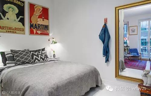 小编的话:卧室背景墙上以个性的人物装饰画来装饰这一墙面,两盏对称的床头灯给这间卧室带来些许设计感。