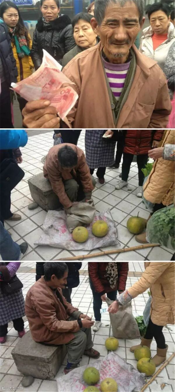 葛大爷沿街叫卖柚子,两名妇女和一名男子用300元分3次买了6个柚子。大爷找零后才发现这300元都是假钱!揣着三张百元假钞,葛大爷欲哭无泪,路过市民知情后,纷纷掏出10元、20元送给大爷作车费…