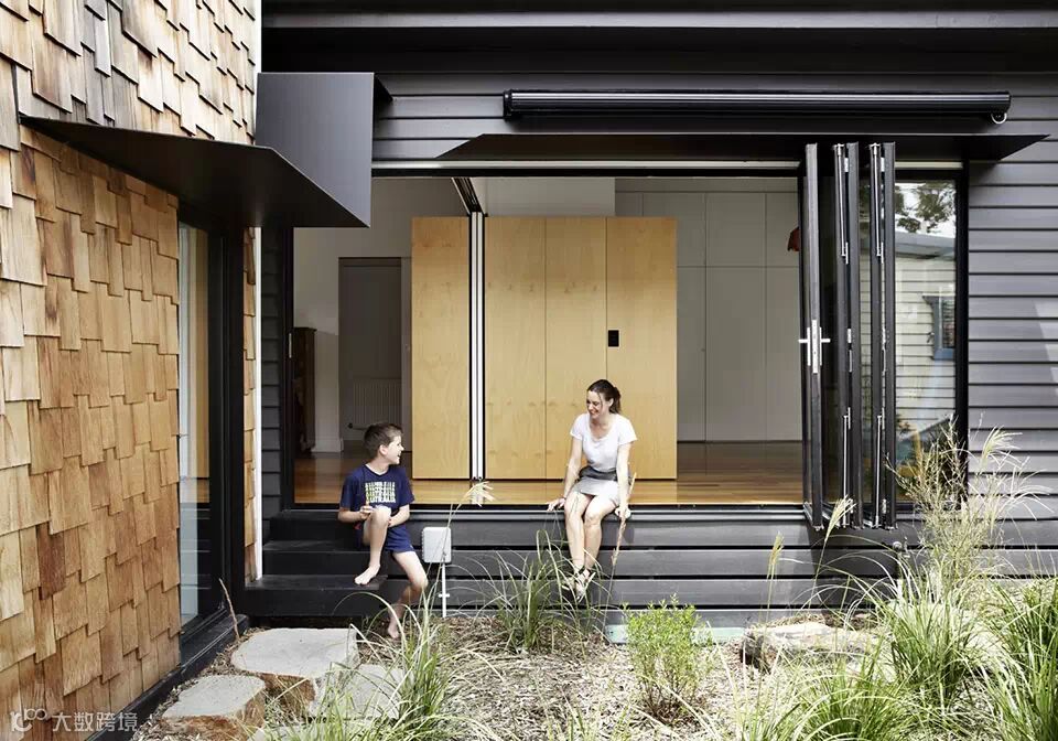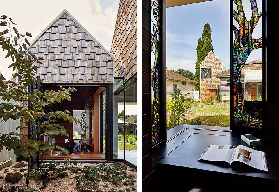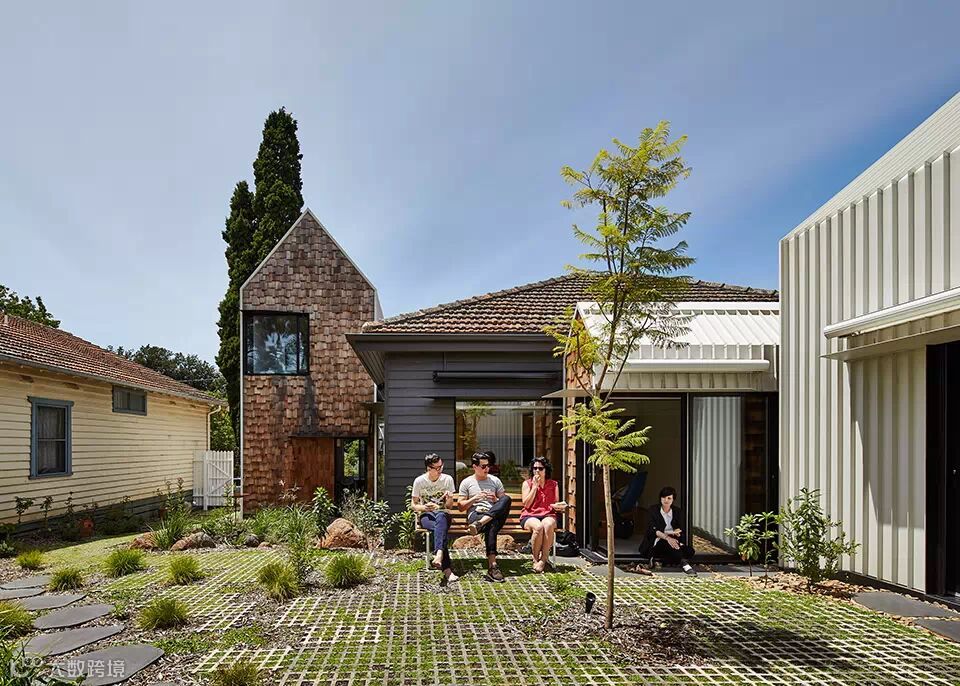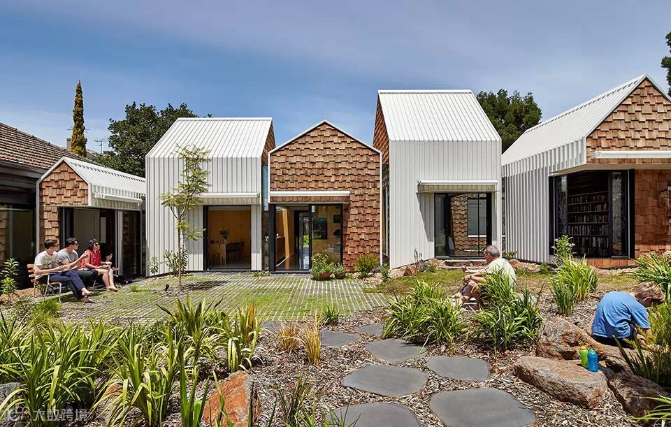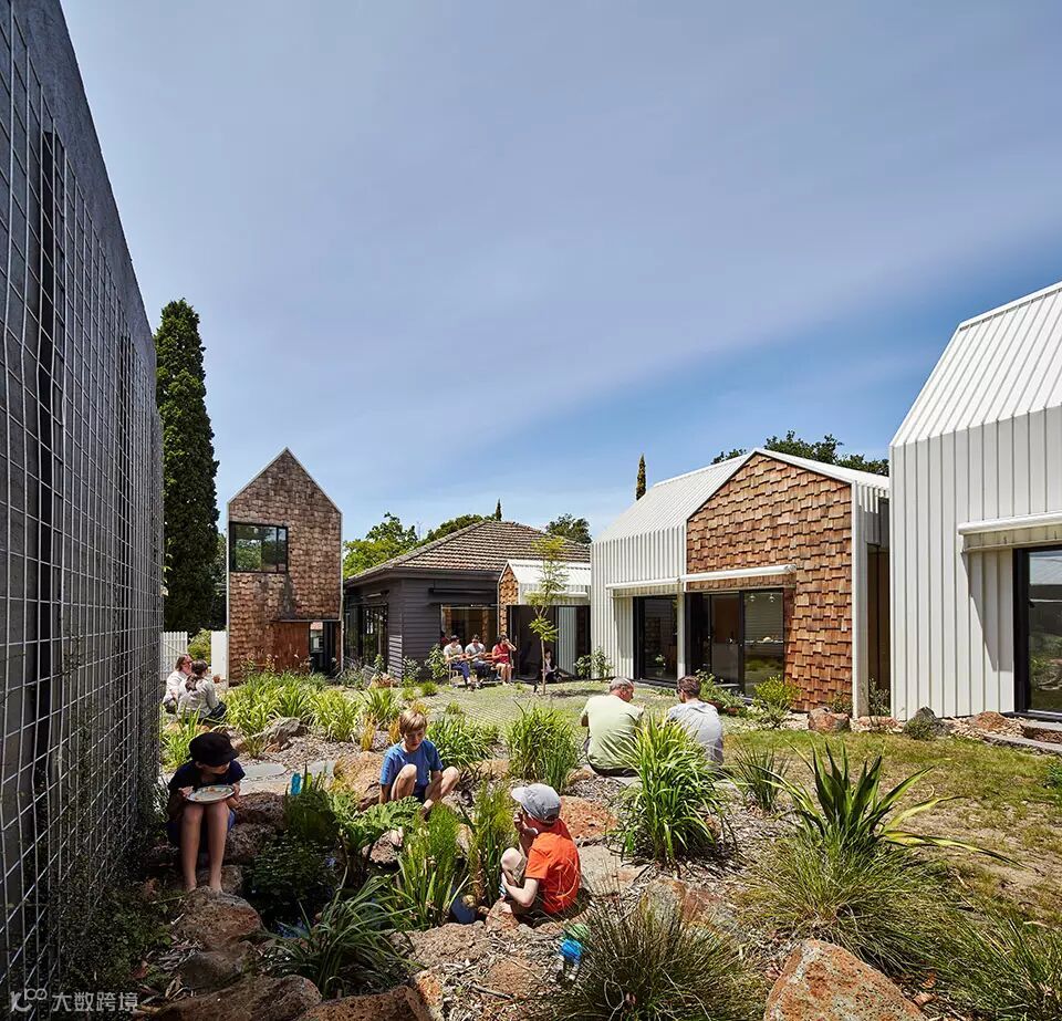 “村庄”位于澳大利亚维多利亚州的爱范顿,场地原有一栋老建筑。建筑师把老建筑改建成为两个孩子的卧室和全家人的客厅,然后再新增的几个建筑体量内设置了厨房,餐厅,主卧,卫生间,图书馆,游乐屋。在这样的环境中,生活不再限定在厨房,浴室等场所中,生活的眼光放在了艺术,政治,宇宙等等事物之上。