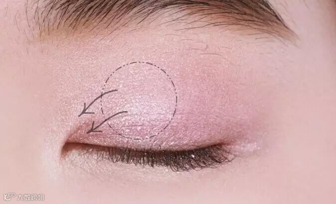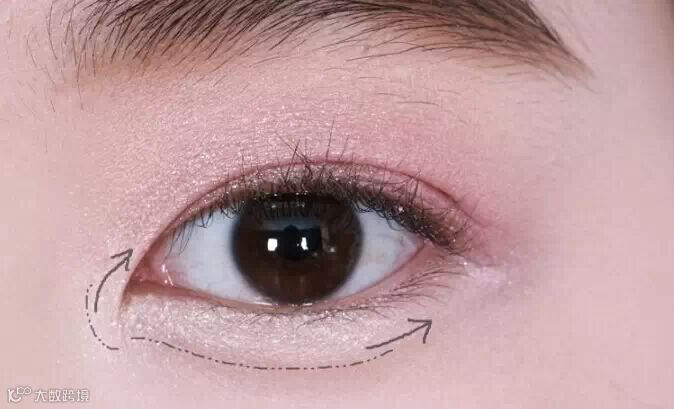 STEP2:从眼头到下眼睑用珠光白色的眼影提亮。