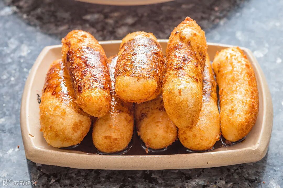 硬糍耙又称“油糍耙”,做法是糯米蒸熟后不捣烂,放在案上搓成团,擀开后放些食盐和花椒粉做成“馅芯”,再卷条切片,再入油锅中炸制,成色金黄美观,咸麻香脆,回味无穷。