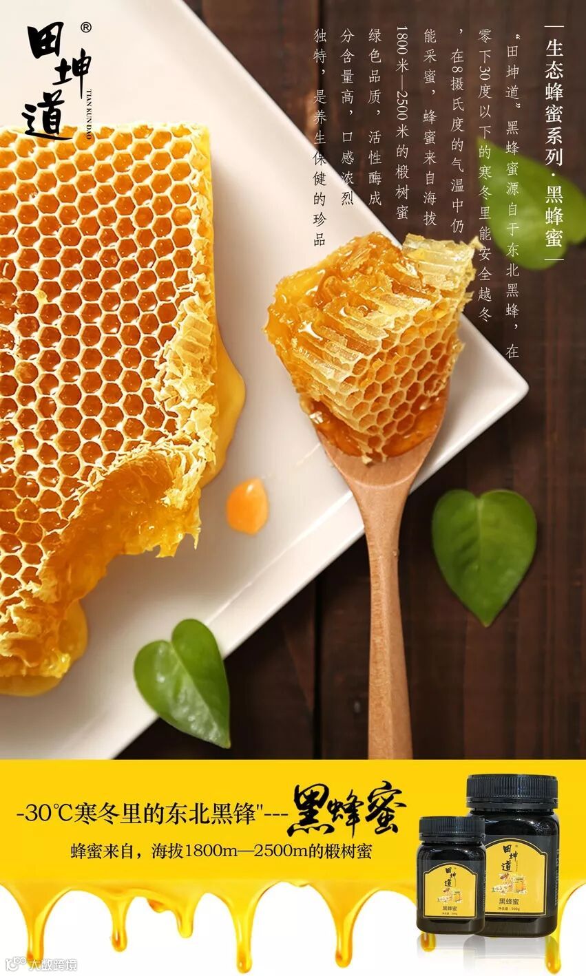 田坤道黑蜂蜜,源于大自然。所采用的蜂蜜采自野生的椴树。制作过程中,不添加任何食品添加剂,保证食物纯天然的品质。