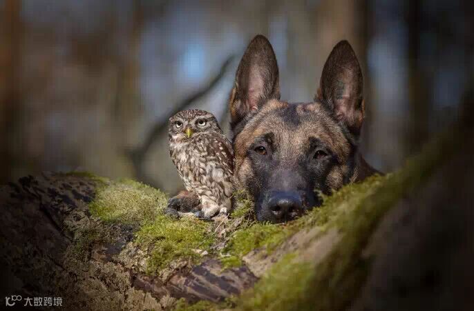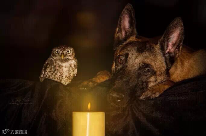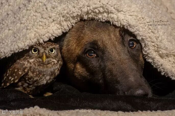 马犬Ingo和小猫头鹰Poldi成为了好友,每天形影不离,德国动物摄影师Tanja Brandt用照片记录了动物间这段甜蜜窝心的友谊,拍的好美,好有爱~!