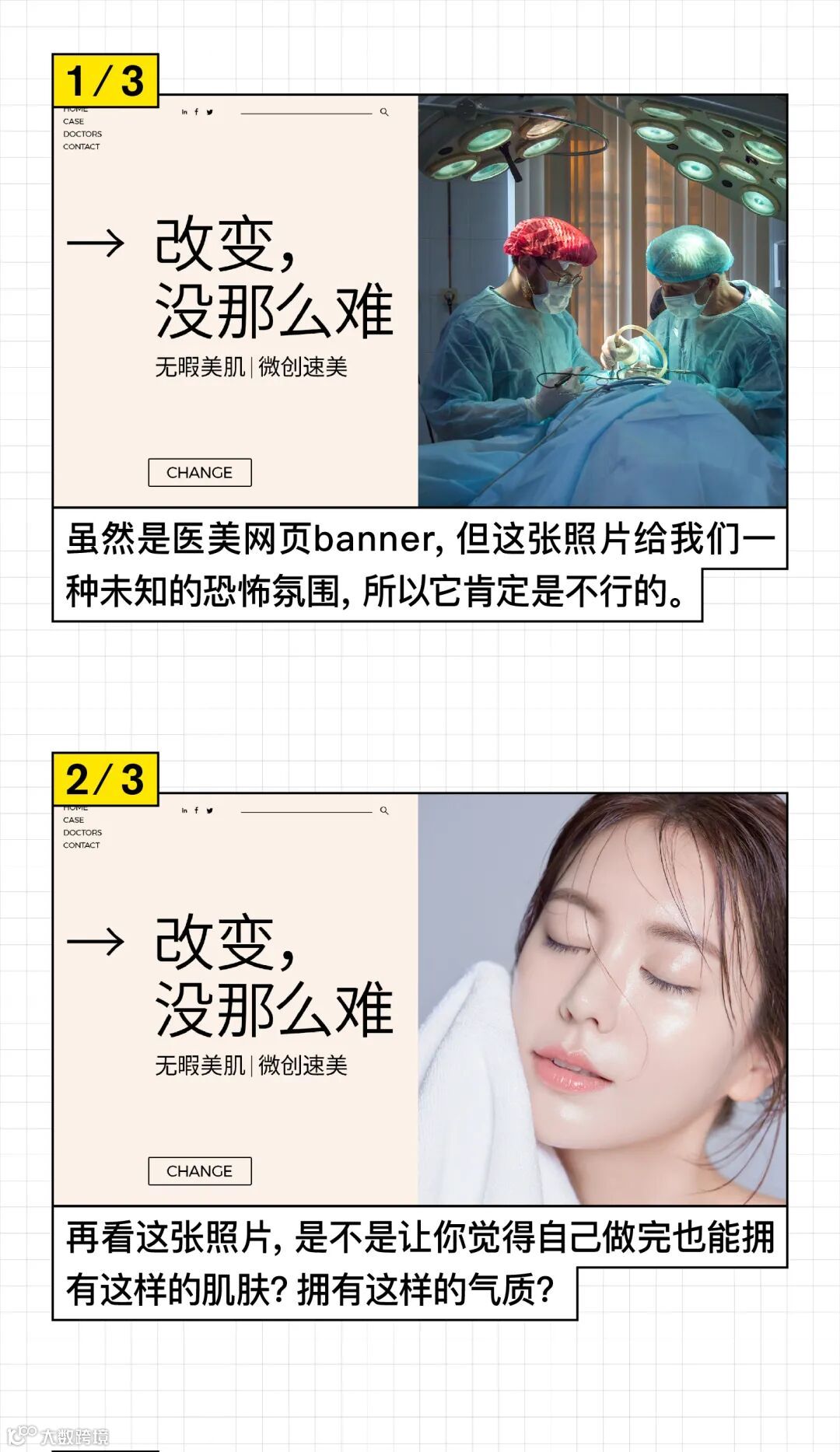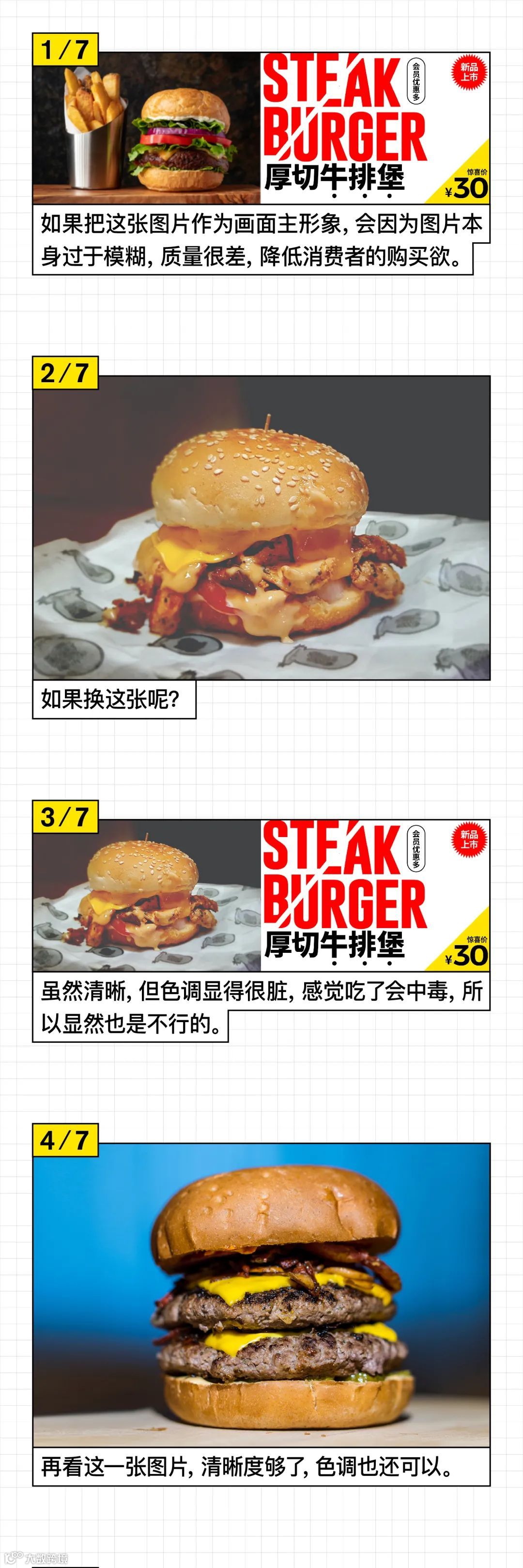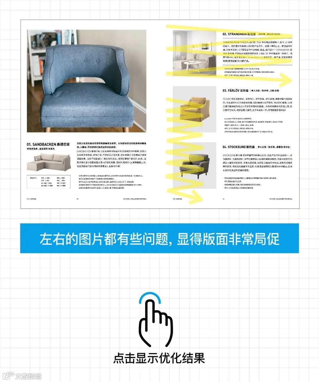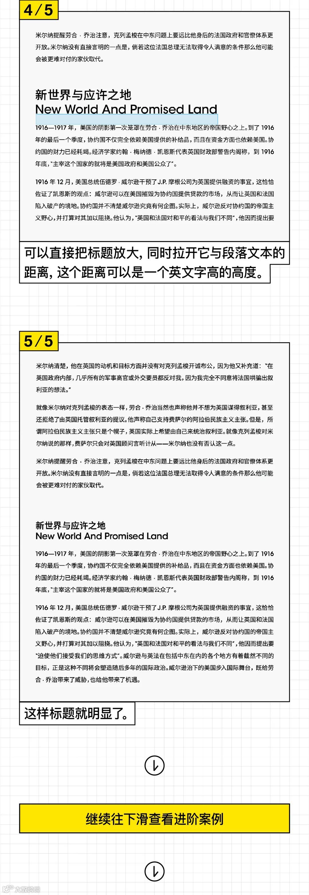 版面中的元素处理;文字的应用,注意层级关系、字体选择、灰度设置;图片的应用注意图片的质量、色调,以及多张图片如何编排,今天一图避雷!