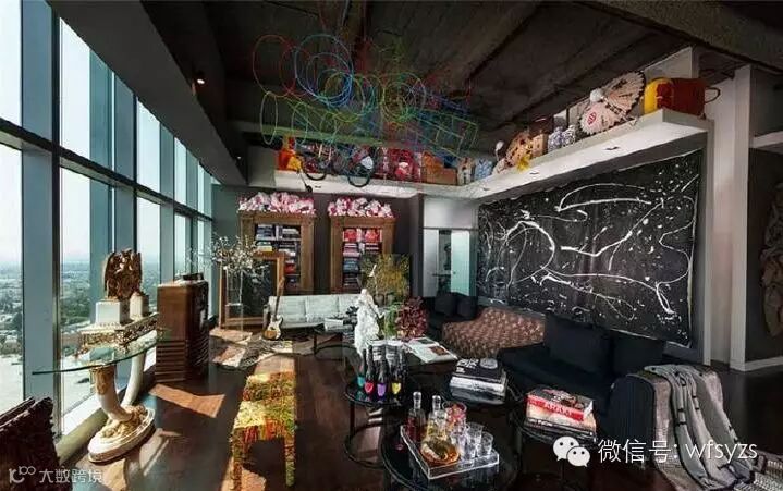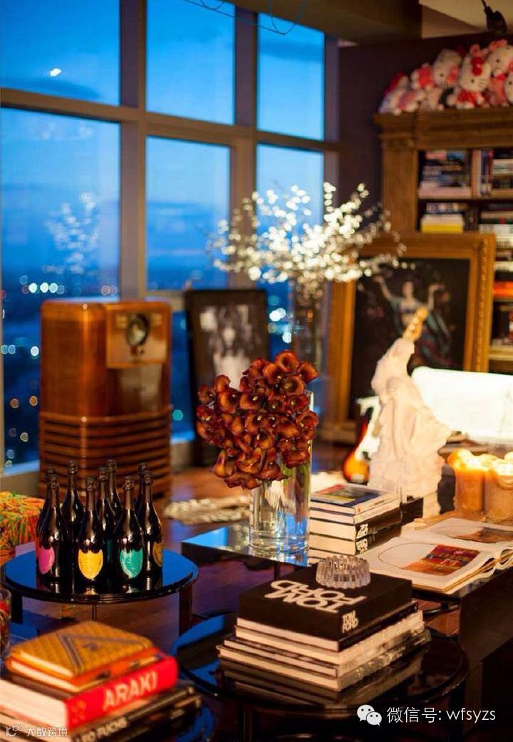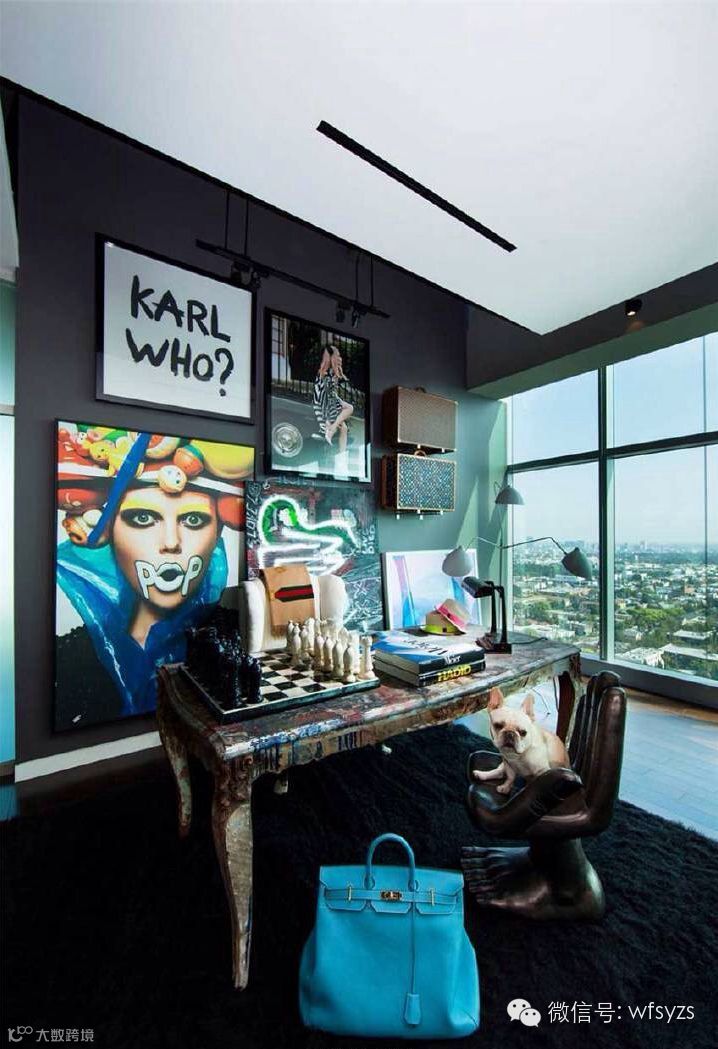 充满了各种时尚元素,包括一些奢侈品牌时尚单品,波普味的鲜艳色彩,时尚的艺术品、书籍,时尚偶像、名人的画像,复古家具等等,