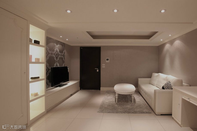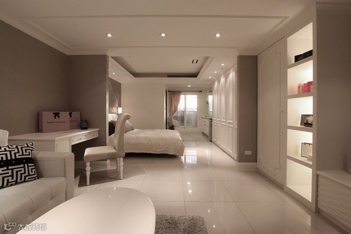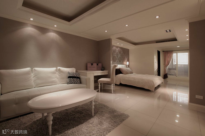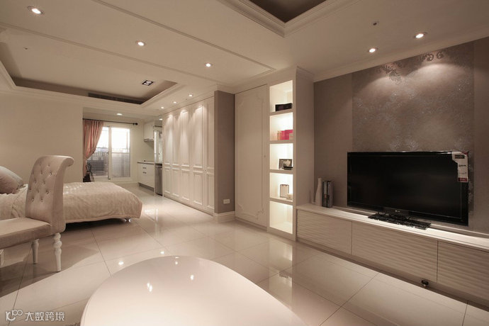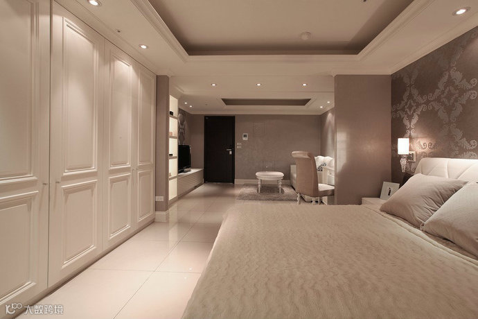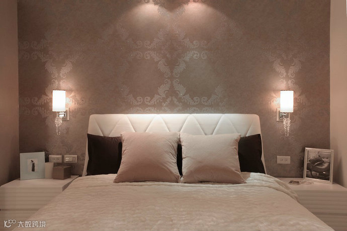 电视墙和床头使用同一块进口壁纸,富含小亮珠闪亮立体的效果,让整体提升了时尚感。