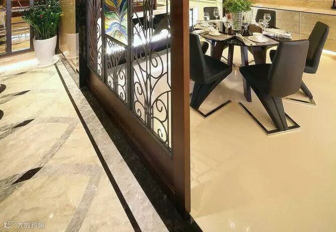 玄关地坪大器延伸,模糊了与餐厅间的界线关系,活动式窑烧玻璃屏风弹性形塑VIP宴会厅质感。
