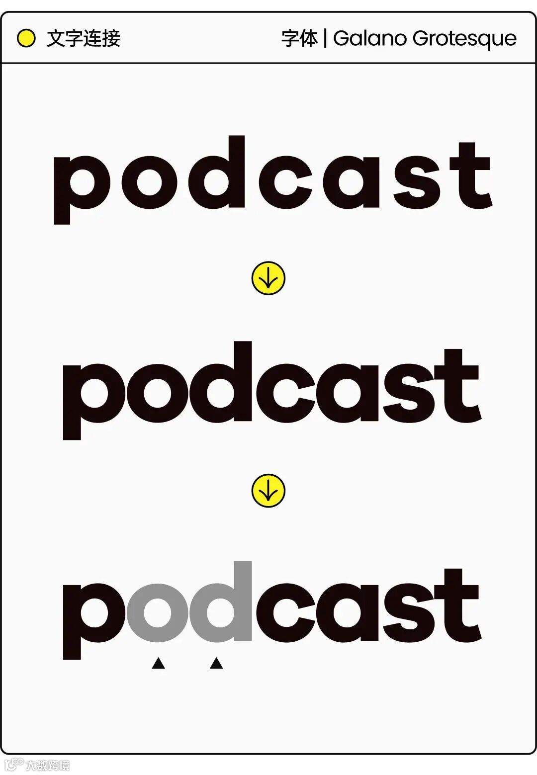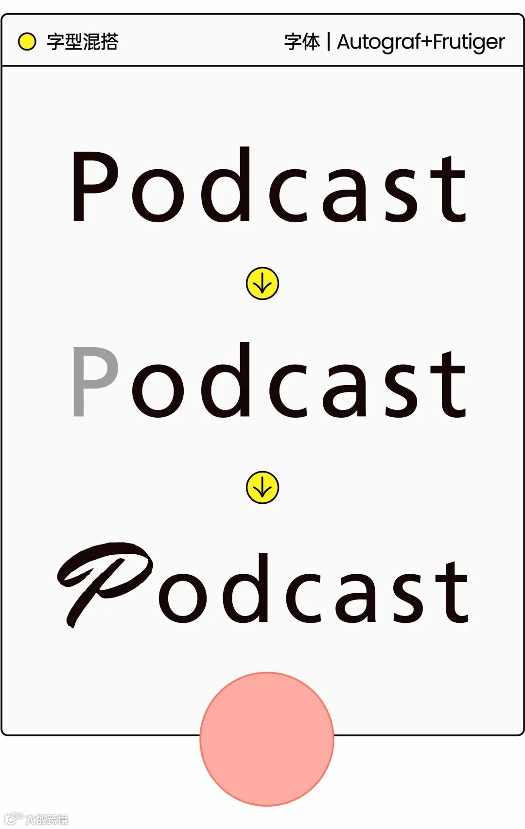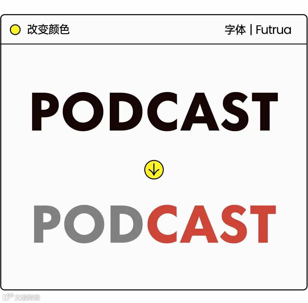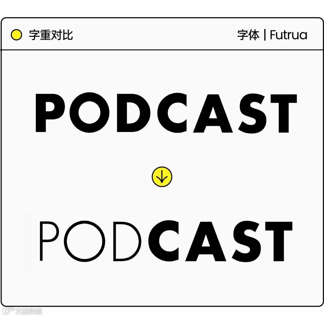把“POD”的字重降低,与后面的“CAST”形成对比。要注意这个方法更适合有丰富字体家族的字体,同时不要让粗细对比太弱,会很难出效果。