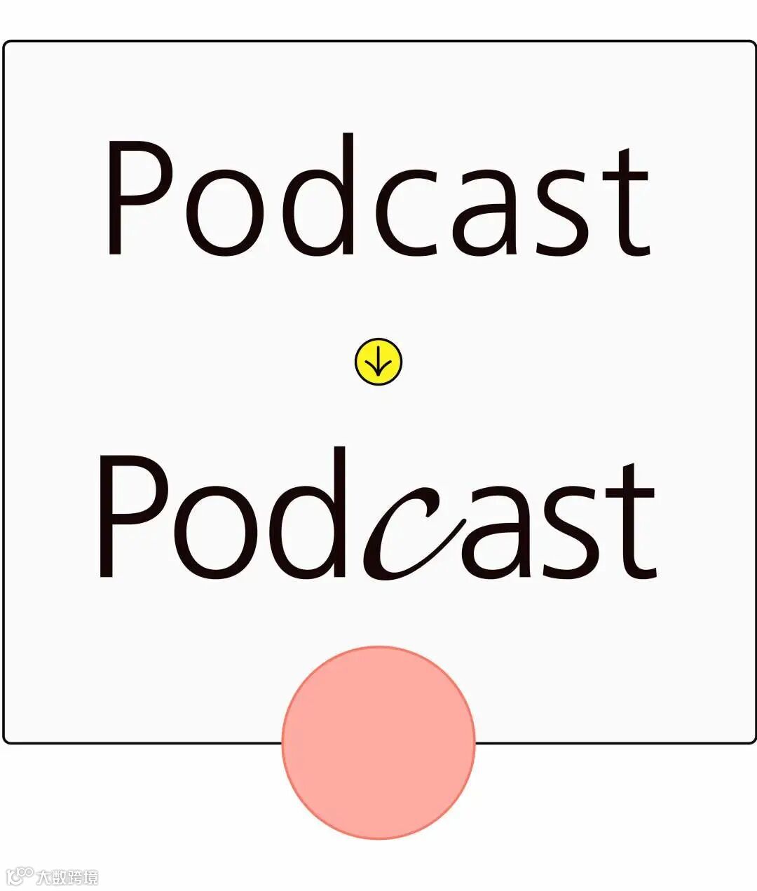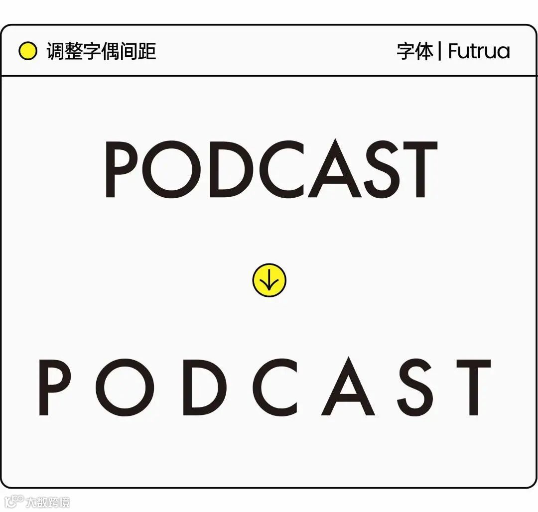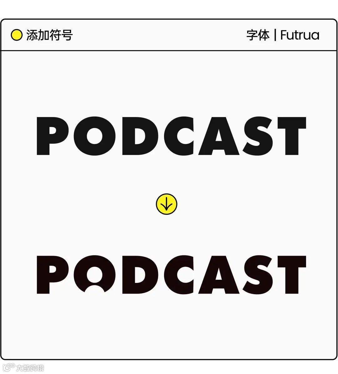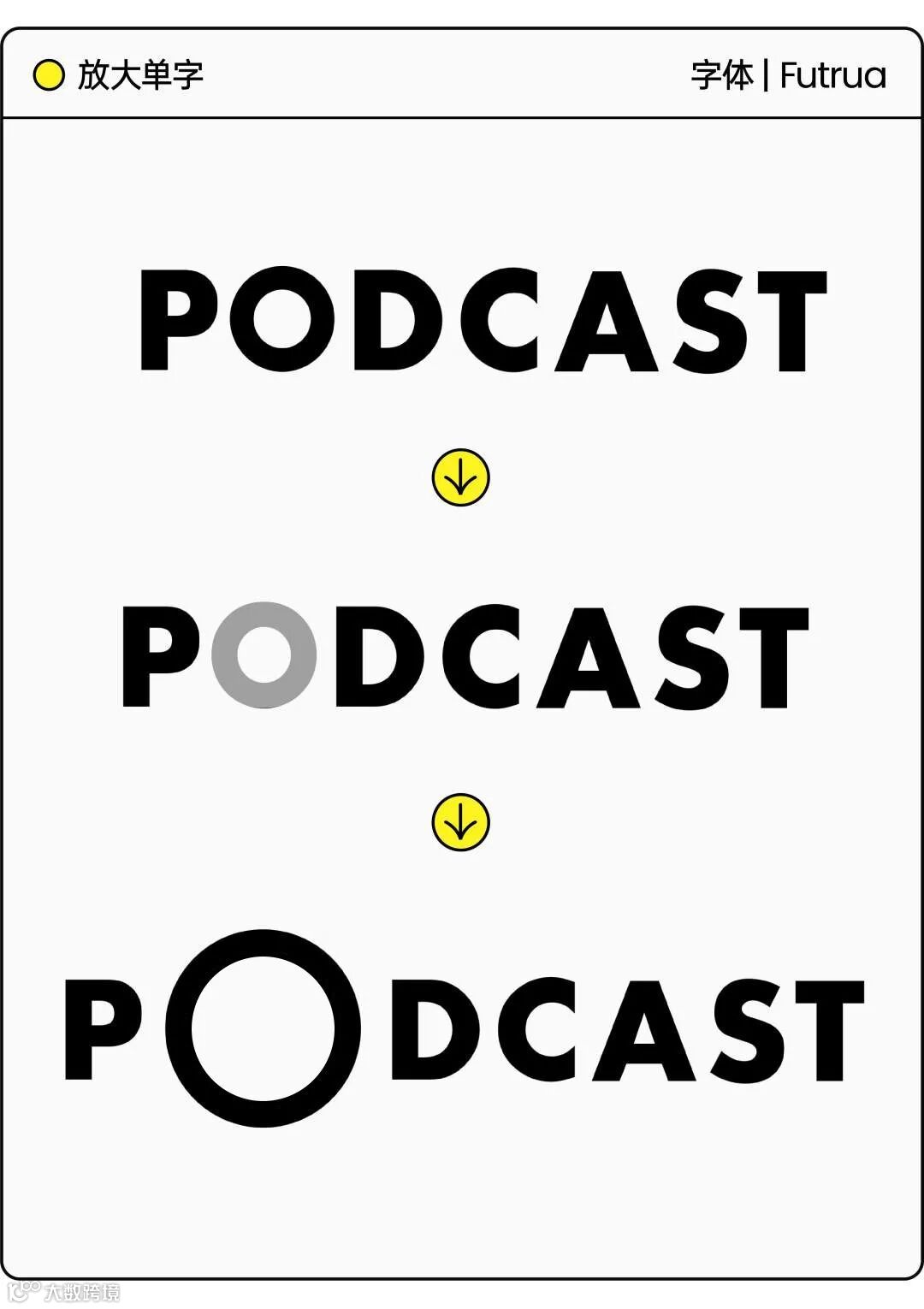 把“POD”的字重降低,与后面的“CAST”形成对比。要注意这个方法更适合有丰富字体家族的字体,同时不要让粗细对比太弱,会很难出效果。