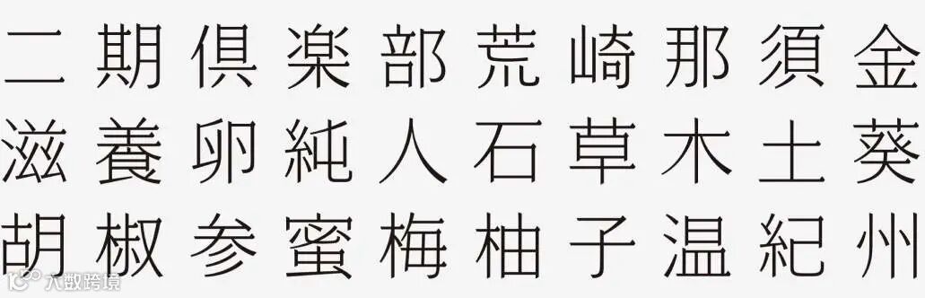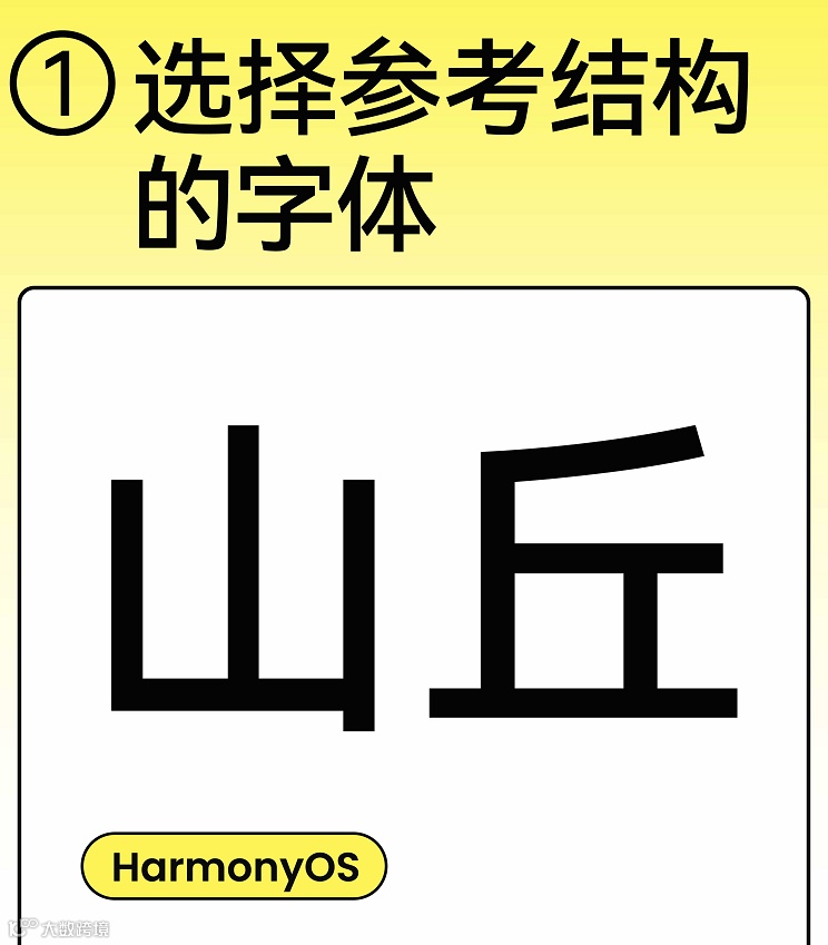 接着,选择一款参考结构的字体,这里我用了鸿蒙的黑体。这里还是提醒一下大家,结构的参考,保险起见还是以几款商业免费字体为主。付费的字体如果结构改动不够,很容易构成侵权。其实,现在的这几款商业免费的黑体结构上已经相当简洁了,很适合用来作为类似技法的起点。