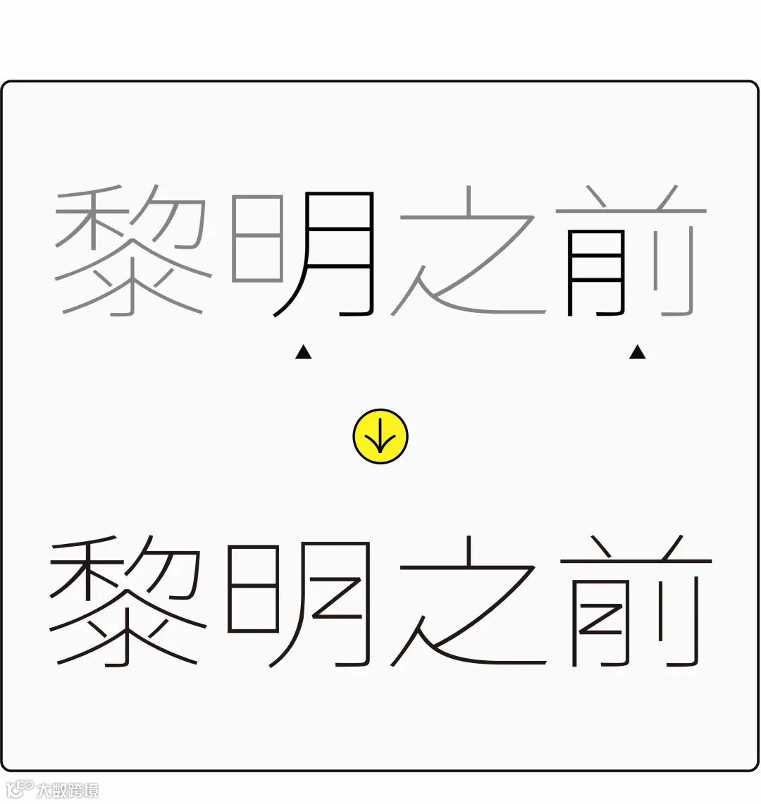 放大会形成强调作用。通常来说,会选择放大首字母,但有时如果单词中间的字母更合适也可以选择放大。放大时线条会变粗,要记得降低字重与其他字母保持平衡。