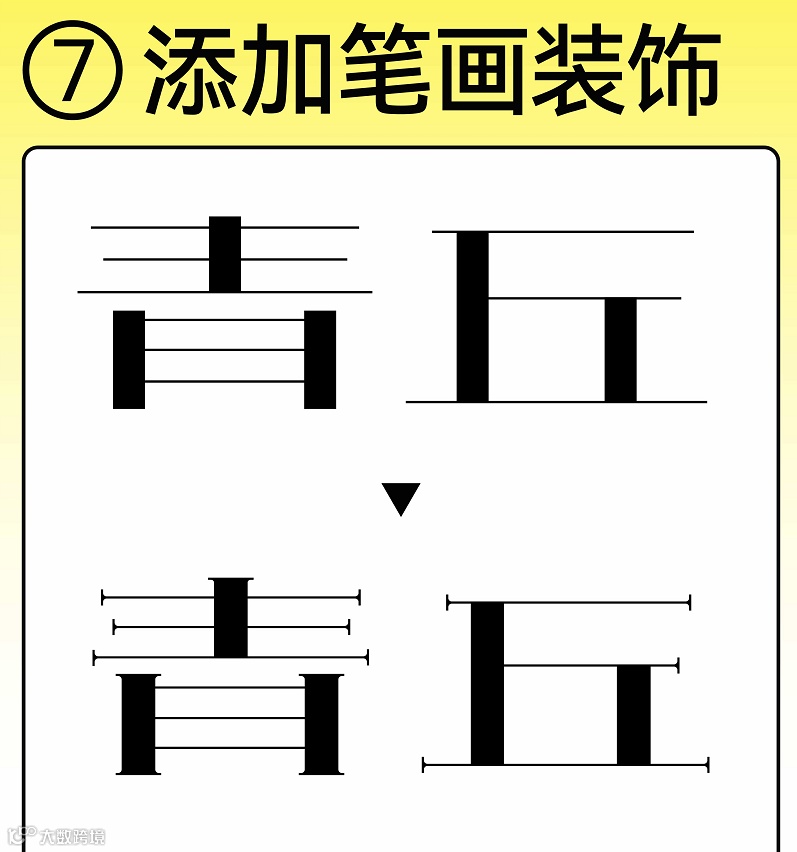 把最终的成品拆开分成笔画和结构两部分来看待。因为参考了字库的结构,所以我们的起点就已经挺高了,这时候只要稍加一点笔画上的装饰,效果就会很不错了。