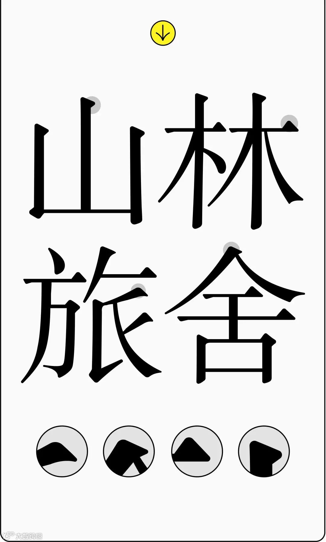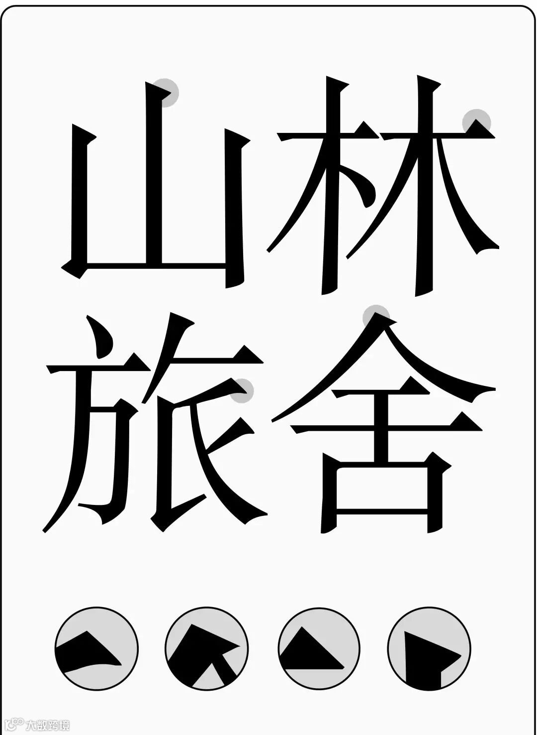 再来看这一款字型,它是一款字库,笔画装饰也与之前的类似,是一个有微弱弧度的钝角三角形,选择参考这个特征来设计字型。