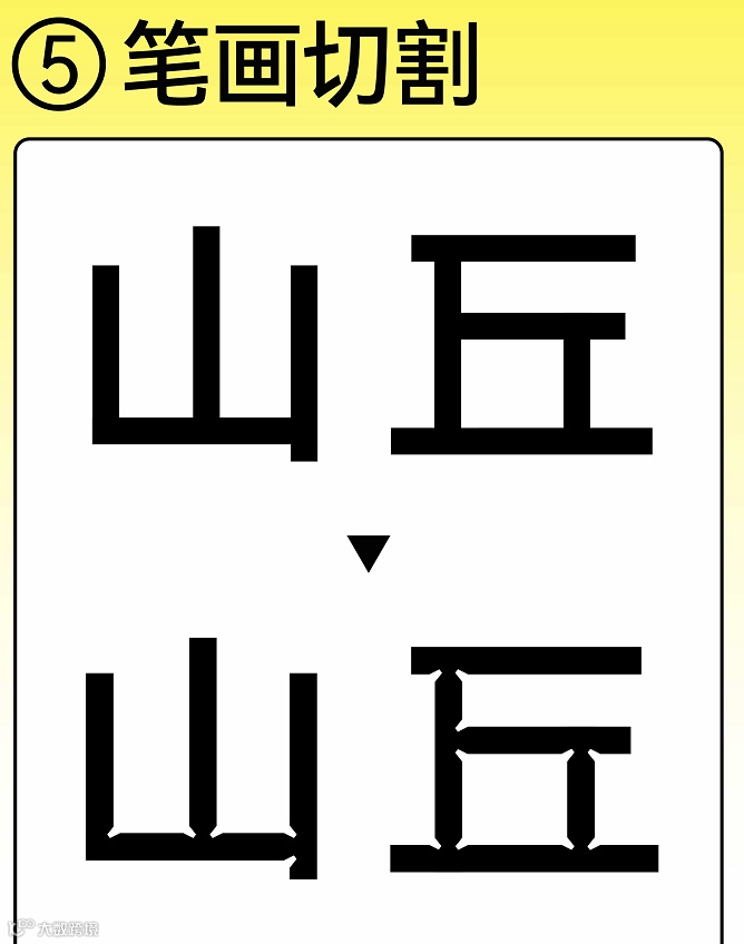是在某些笔画上进行切断以达到丰富字型的效果。