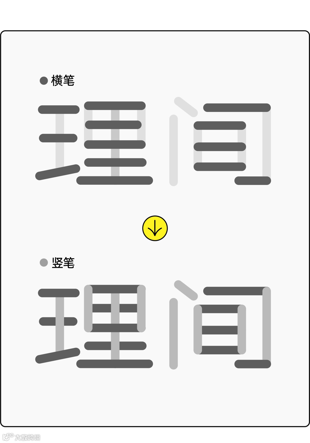 先处理横笔,全部使用深灰。然后是竖笔,全部使用浅灰。利用不同颜色和笔画交错叠压营造空间感也是一种不错的表现形式。