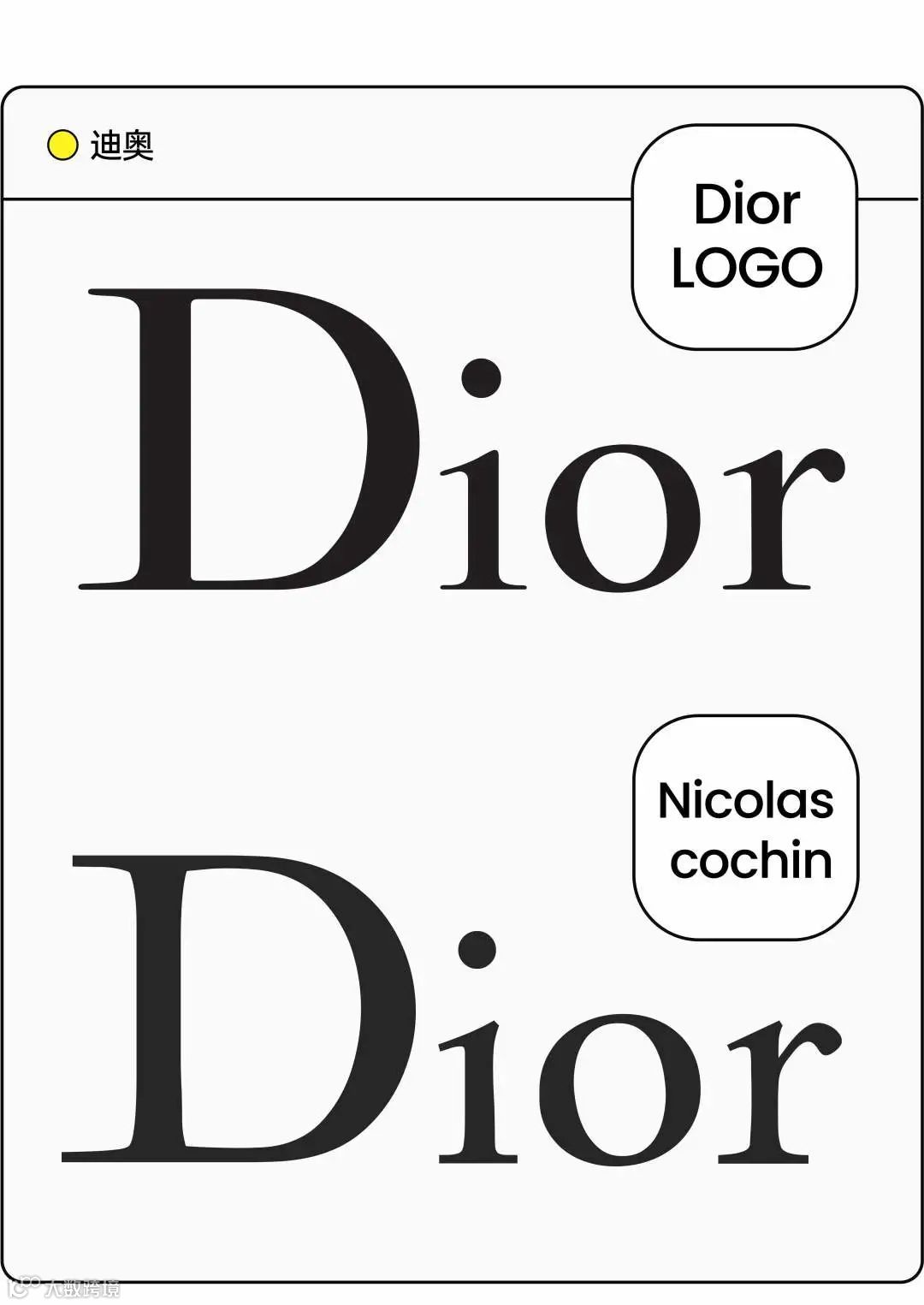 通过对比可以发现,迪奥的Logo相较于字库也没有太大的变化,只在部分细节和字偶间距上有一些细微地调整,让Logo看起来更加均衡。