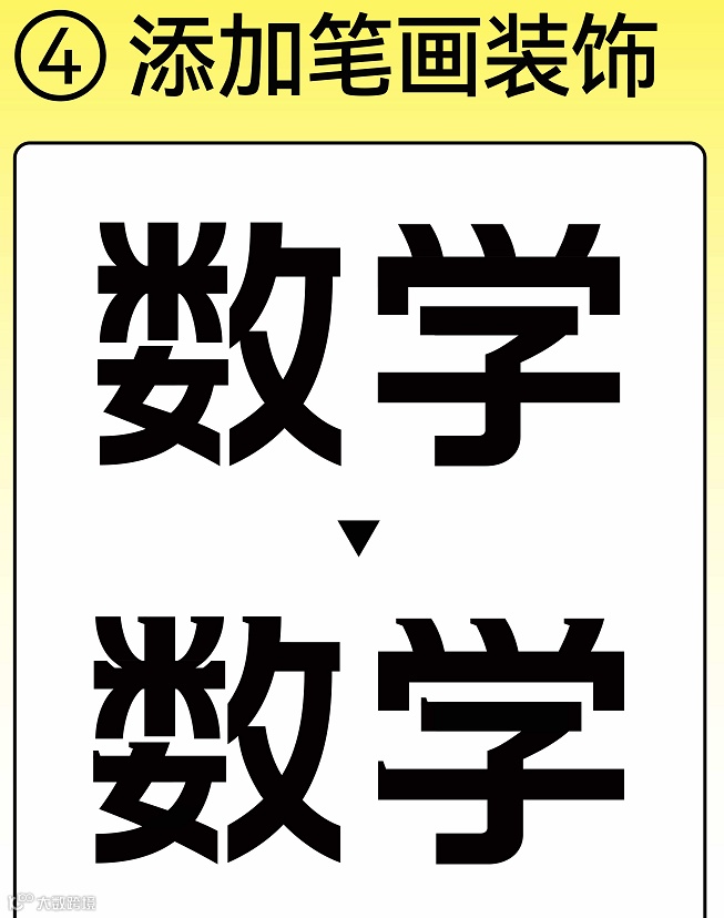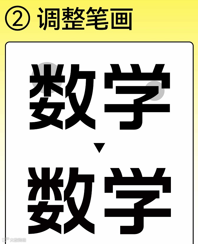 为了更“像”Logo,需要让字体更加图形化。我调整了「数」字左上角「米」的部分和「学」的下半部分。