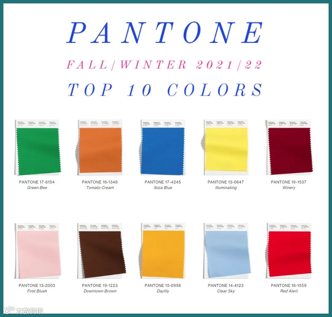 • 潘通发布了 2021 秋冬 10 大流行色;