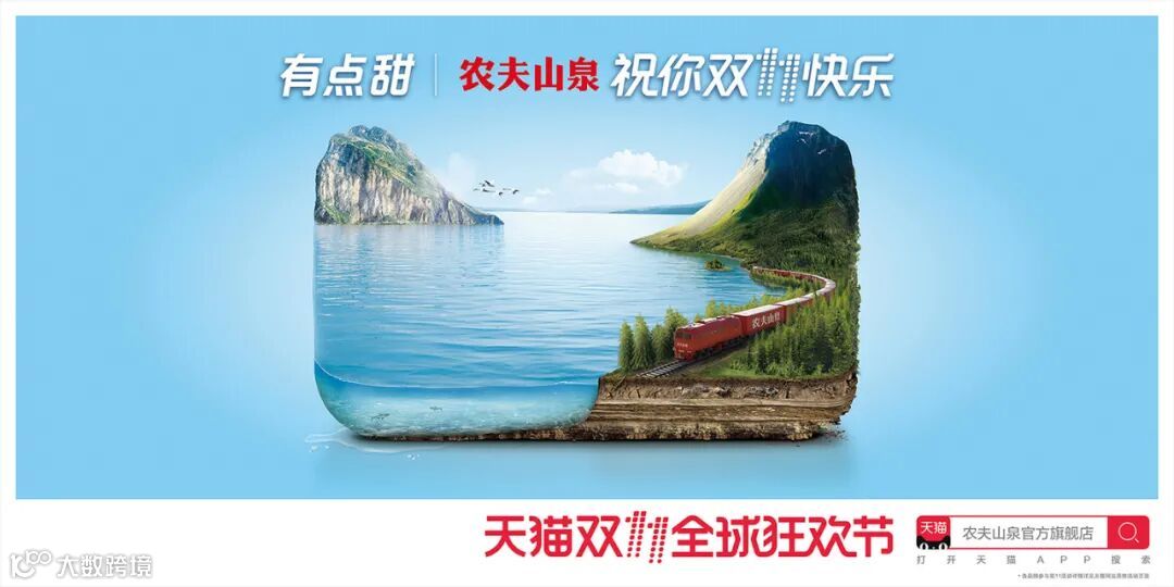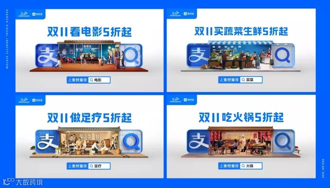再比如从去年双12开始,支付宝大部分海报都以搜索框作为核心视觉符号。通常是把搜索框这个符号场景化,让中间的输入框部分变成展示产品(