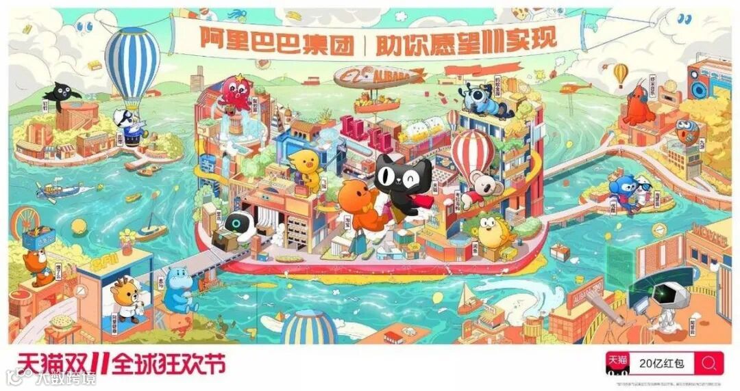 这两点我们都可以从天猫猫头系列海报中找到答案,因为每年天猫双十一都会联合众多品牌推出一系列海报,至今已有几百张,几乎囊括了这些年设计圈里所有最主流的设计风格和符号化海报的元素组合方式。