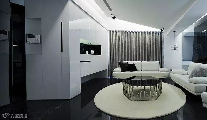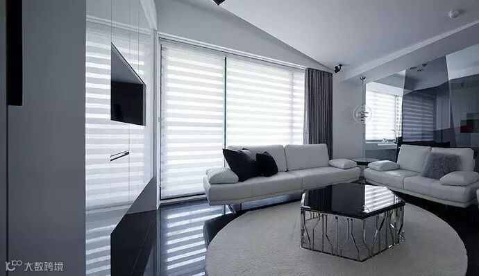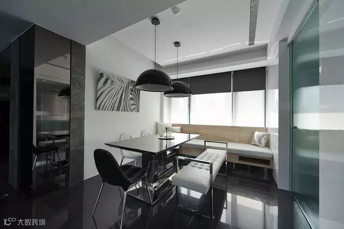 延伸视野-设计师擅长以镜面延伸视野长度的手法,运用在中间跳接黑镜的书房隔间墙上。