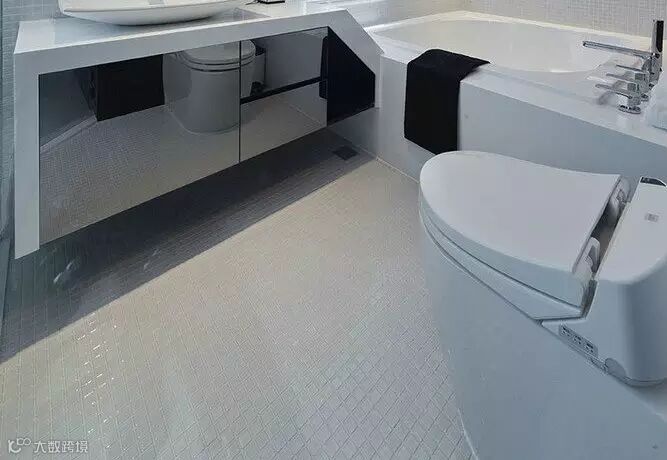 主卫浴-白色亮面马赛克铺叙的主卫浴里,洗脸台连结浴缸的设计手法,让两个机能设备也能是一体成形的空间装置艺术。