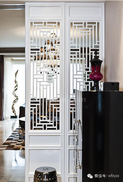【走道装修图片】白色的雕花屏风设计美观大方,合理的划分了区域性,别墅设计师在一点点配饰的运用上,除了展现业主不俗的审美,更带来超乎想象的惊喜。