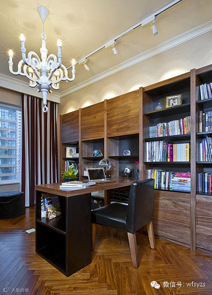 【书房装修图片】木制的家具布局增加了整个空间新古典主义的艺术氛围,更有超强大的收纳设计考虑,让设计变得更加实用和充满了人性化。