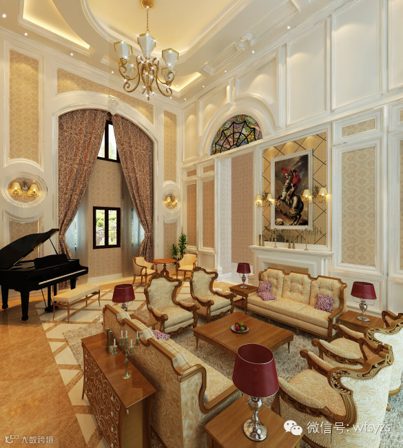 尊贵、高雅的欧式风格,简约而不太多繁杂的客厅装饰,依旧是爱浪漫的别墅业主首选。
