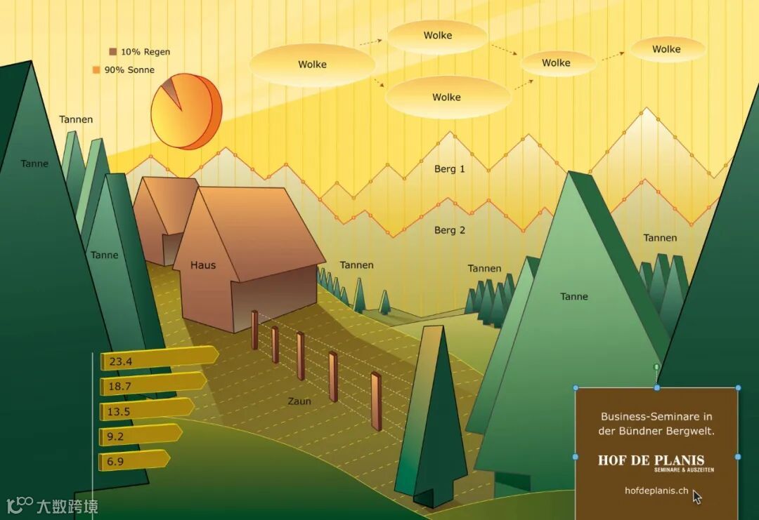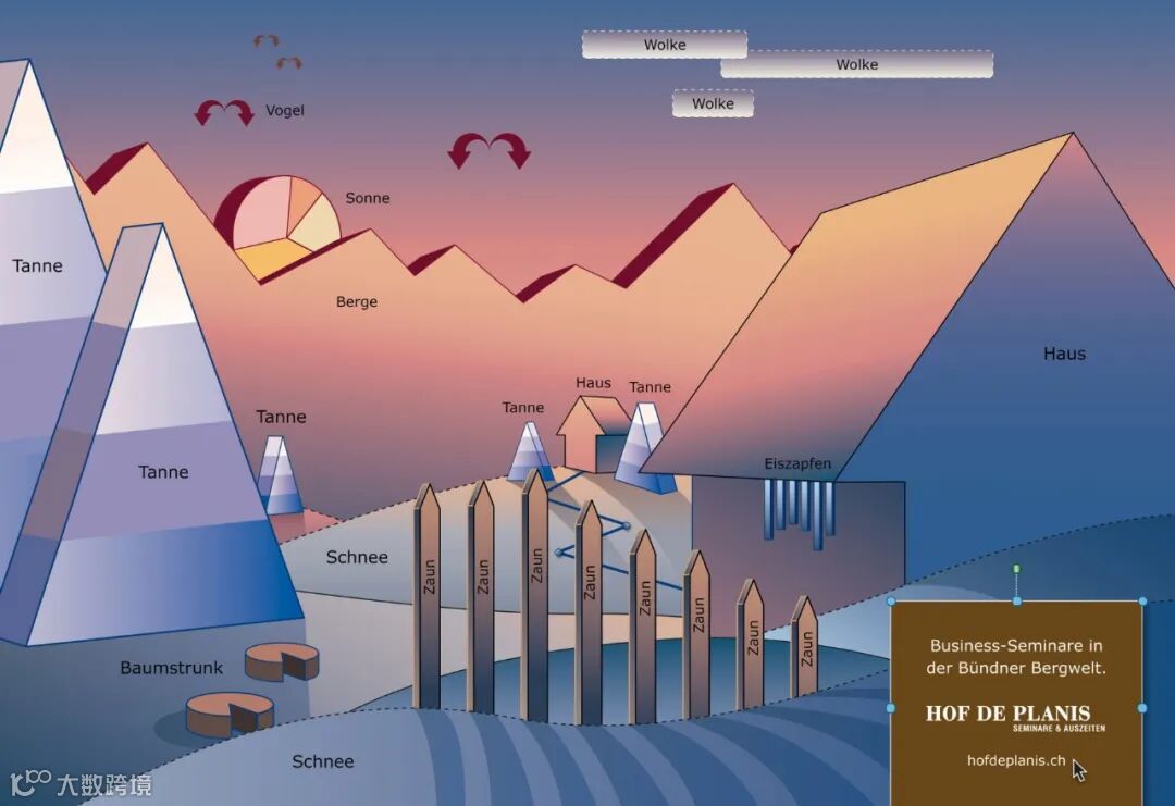 PowerPoint 来重现酒店周围的高山环境,并为每个季节开发了特定的视觉效果,用于商业博览会等场合。