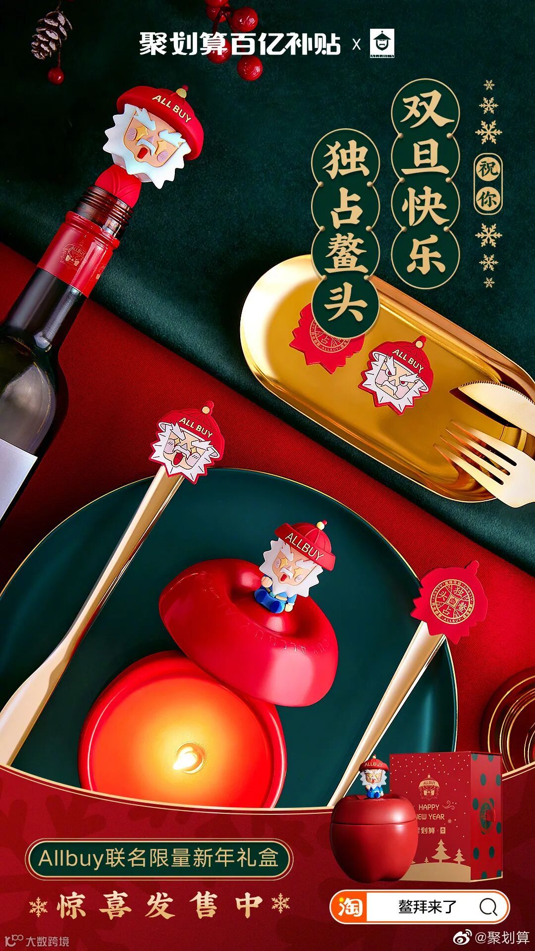 「鳌拜专业户」徐锦江因为戏中夸张的白胡子曾被网友戏称为中国圣诞老人,于是聚划算百亿补贴官宣演员徐锦江担任「聚划算特邀圣诞老人」,并以「独占鳌头」为主题,联名推出 AllBuy 鳌头苹果香薰蜡烛礼盒,以及一套周边礼盒,其中包括 Airpods 套、红酒瓶塞、刀叉套、袜子。