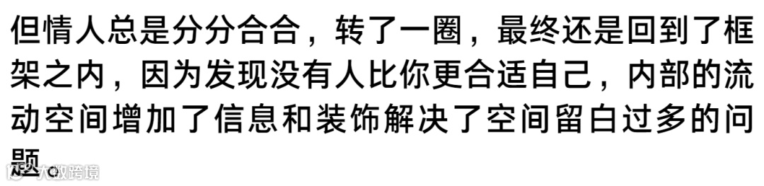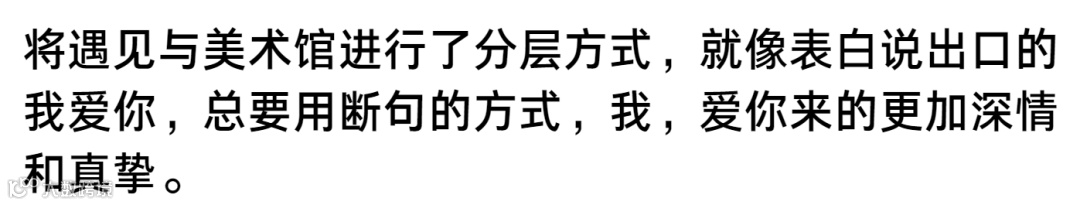 常规的文字对齐放置,就像两个平行世界的人,永远无法相交,文字的对齐与相等间距,其看上去的规整秩序也只是职场中的表面和善一样,缺少了信息的真实表达。