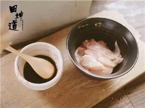 鸡胸肉切成薄片,加上生粉、盐和适量油,腌一会。