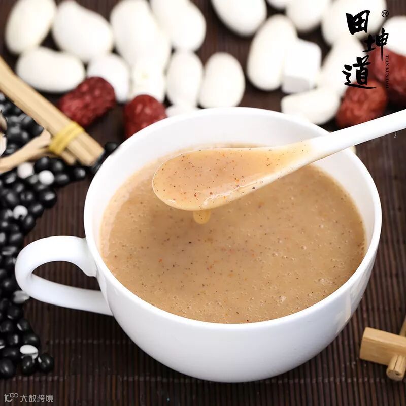 田坤道黑米黑豆黑芝麻粉,属于冲调谷物制品。想喝的时候随时冲一包,简单,方便。也可以作为代餐粉,代替早餐。