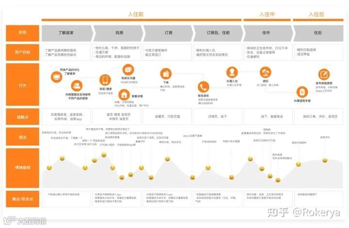 用户在使用一个产品或服务的时候,会有多次的接触机会,每一次接触都是一次体验,把这些接触点连在一起,就是一个用户的体验旅程。我们把这个旅程像地图一样呈现出来,就能帮助我们发现哪些接触点是我们亮点,哪些是弱点。