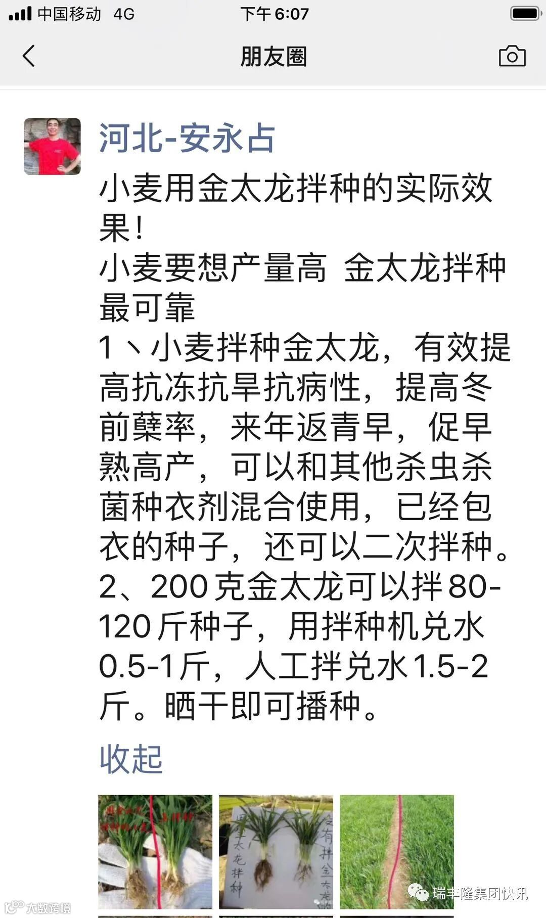 瑞丰隆集团快讯小麦要想产量高 金太龙拌种最可靠