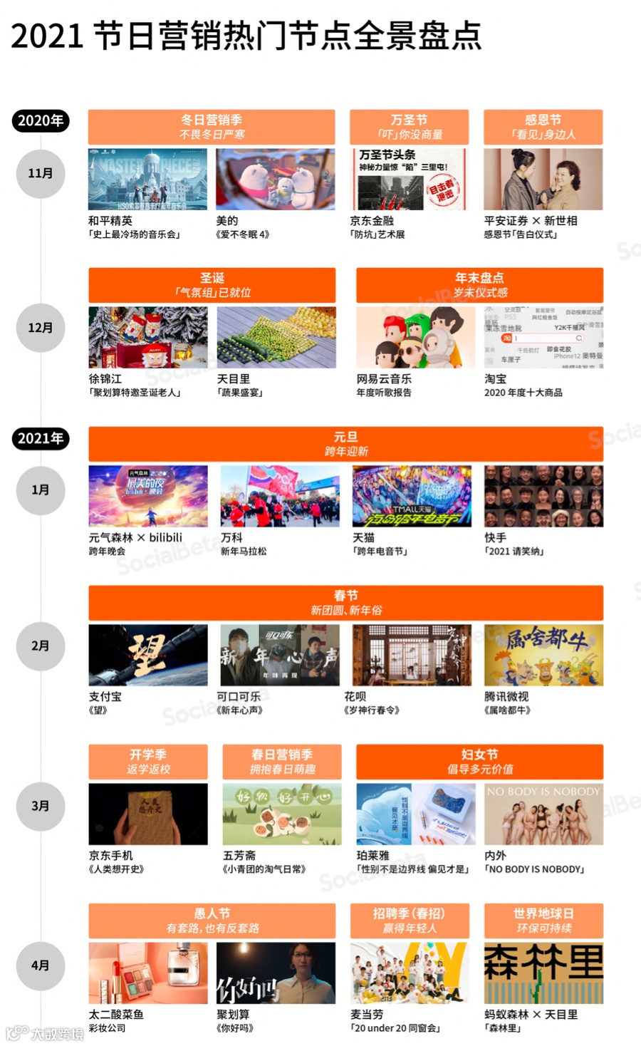 这不仅是一份对于 2021 一整年的营销全景回顾,我们还希望以更细颗粒度的视角,深入分析样本中的每个节点,探寻品牌在节日营销中的那些延续与变化,提炼出具有前瞻性和落地意义的趋势洞察,为众多 campaign 创造者致胜 2022 节日营销新周期带来灵感和启发。