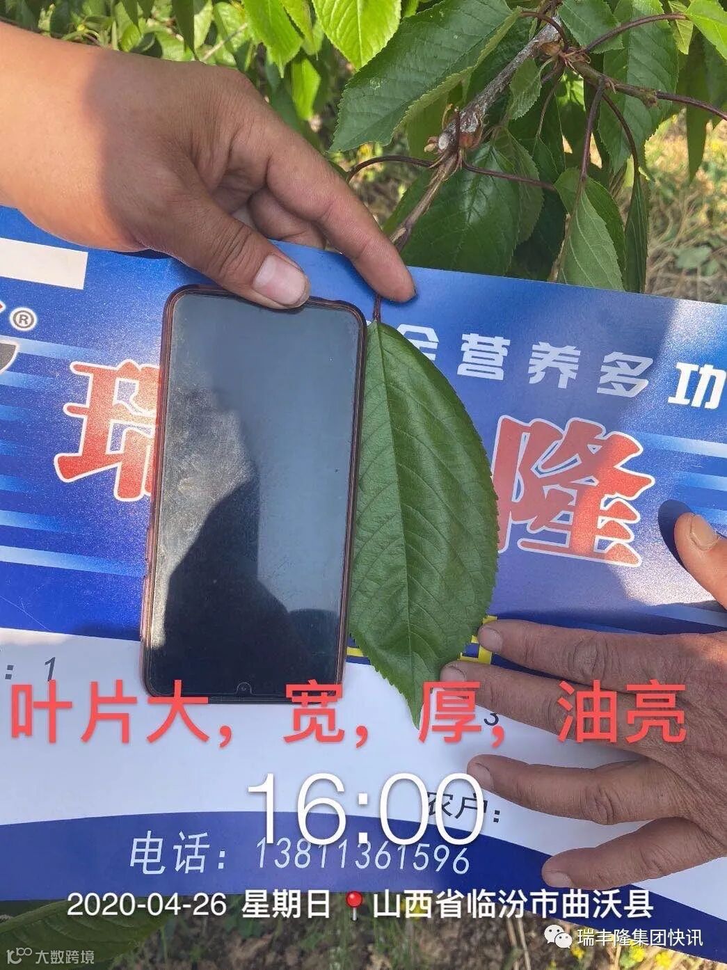 导读:喷施使用了瑞丰隆的樱桃,花芽多花芽饱满,果个儿均匀,叶片大,宽厚而油亮,从使用了3次瑞丰隆的樱桃来看,五月定