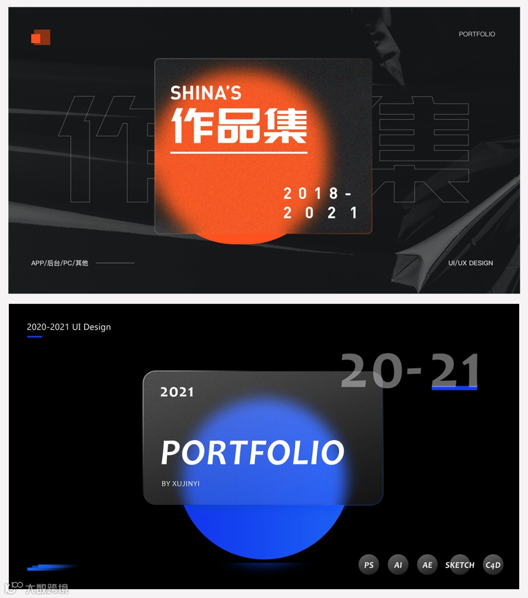 毛玻璃风格是目前很多设计师都在尝试的风格,当然它也经常运用到了作品集的封面中。