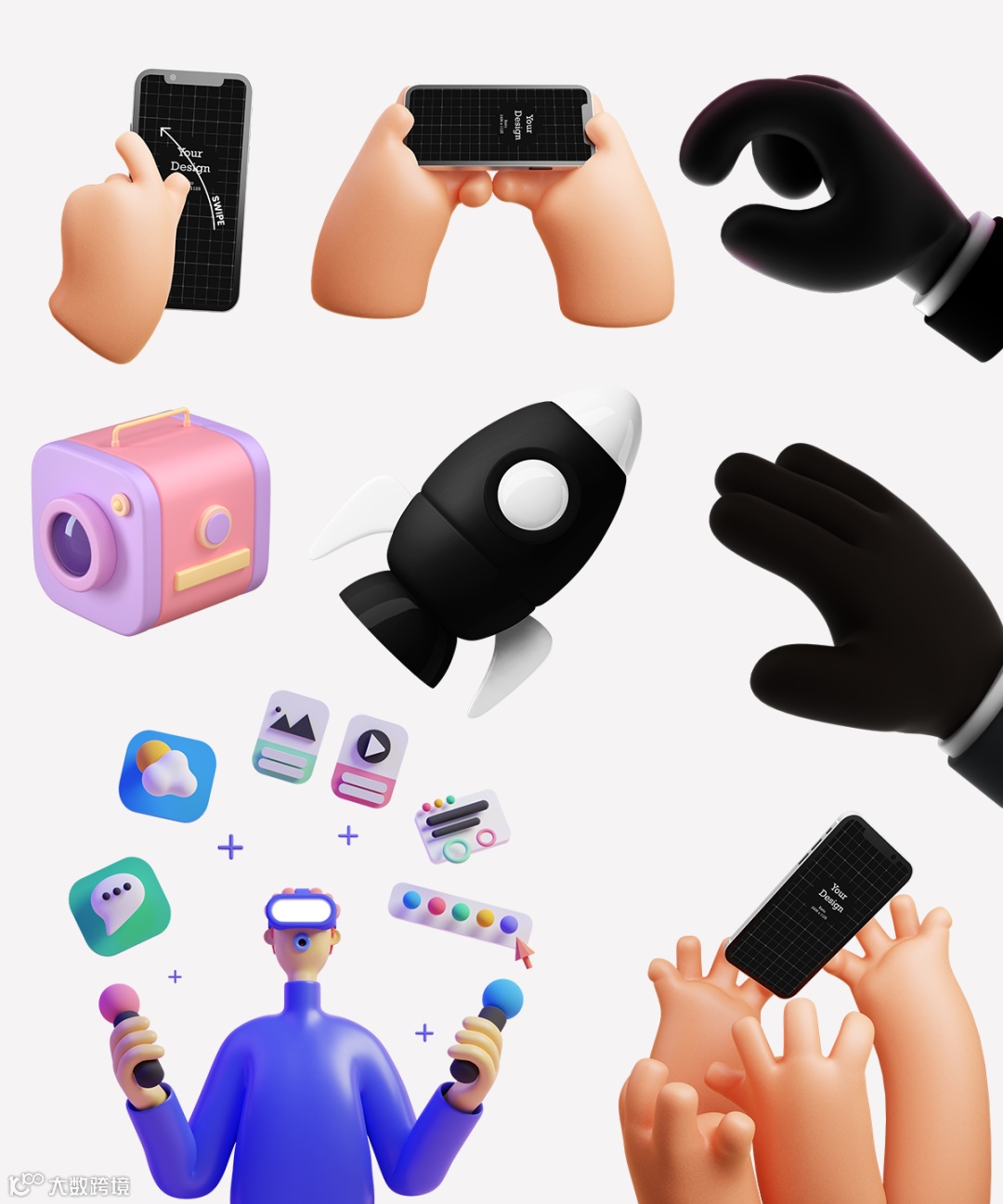目前用3D元素呈现的作品集封面也是非常多,特别是对于UI设计师而言,“3D小手手”特别受欢迎。