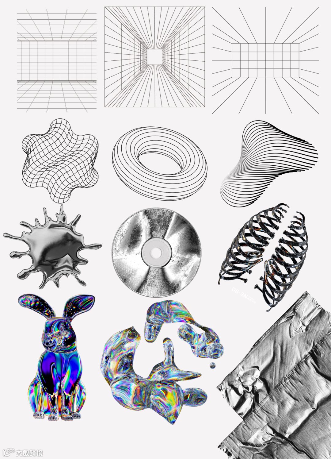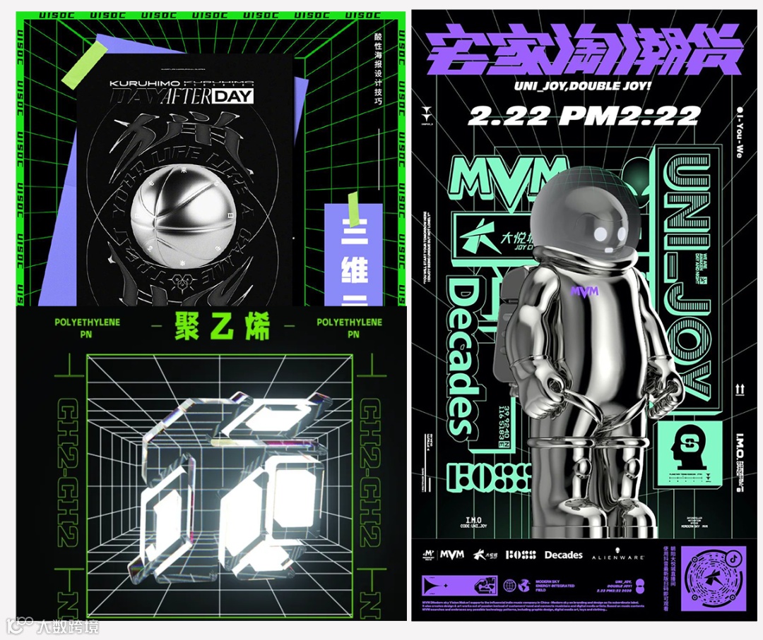 比如透视网格、酸性质感: